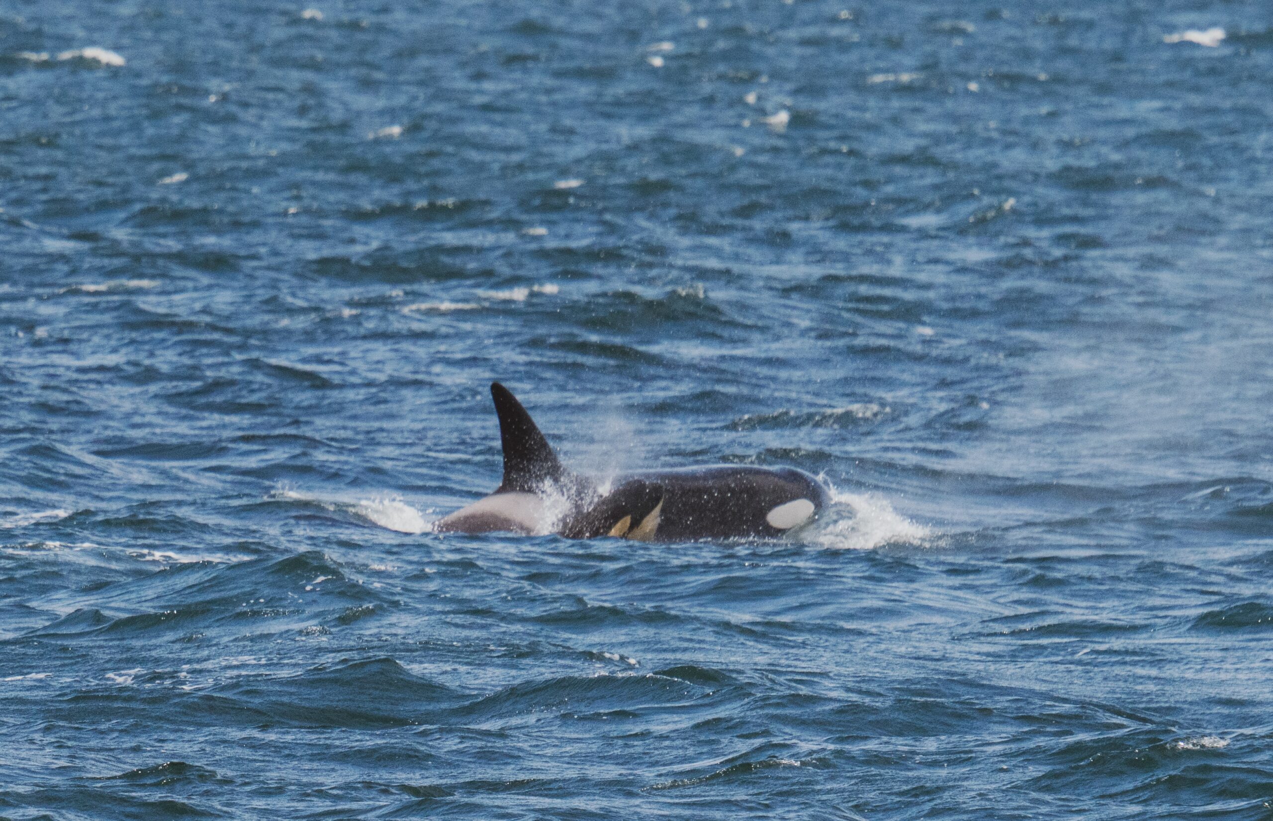 We saw two active groups of transient orcas traveling together up in Boundary Pass. The T123s with Stanley, and the T124As again. The whales were very erratic in movement, following the current.