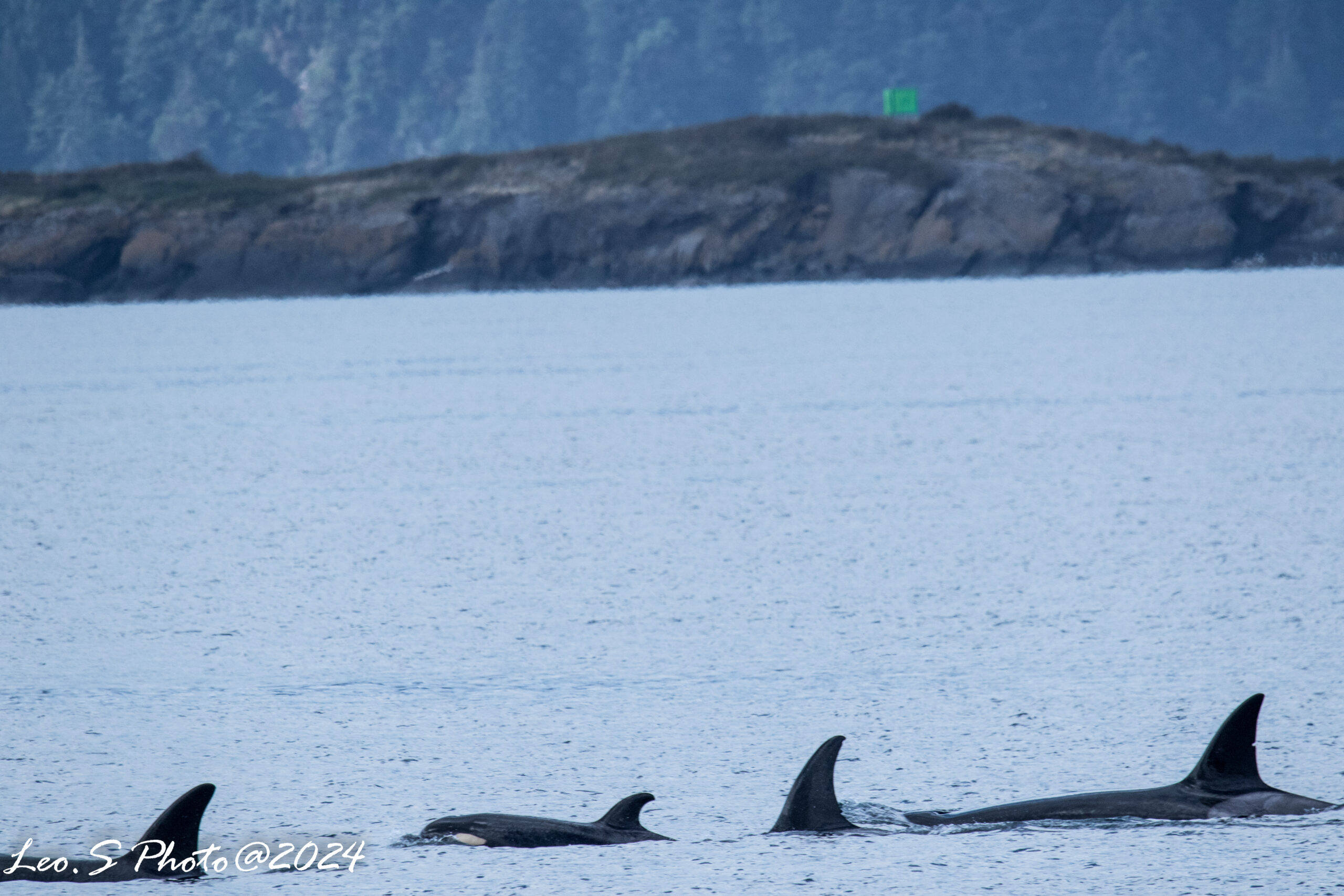 We had to book it out to Haro Strait today, where the T60 brothers and T75B’s had been spotted. As we got there the brothers were splitting off from the 75B’s, so we followed 60D&E. They were traveling through some smaller islands west of Sidney with long downtimes, but we got some good looks.