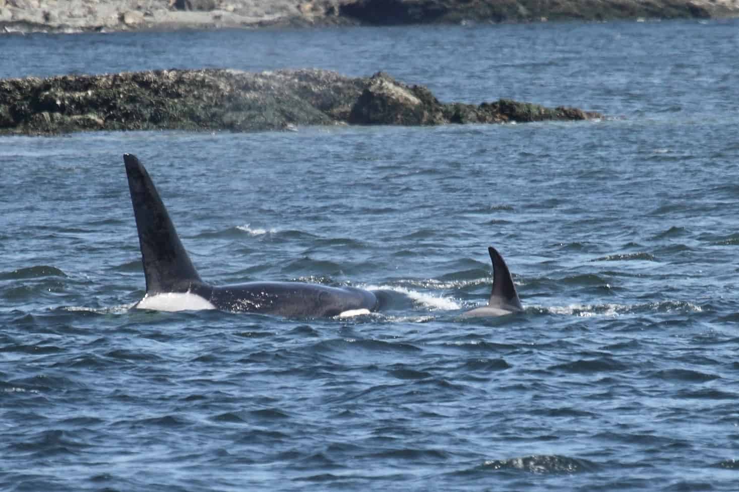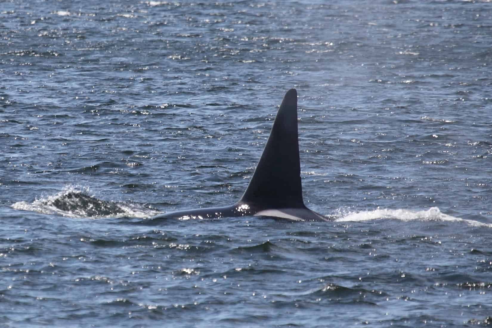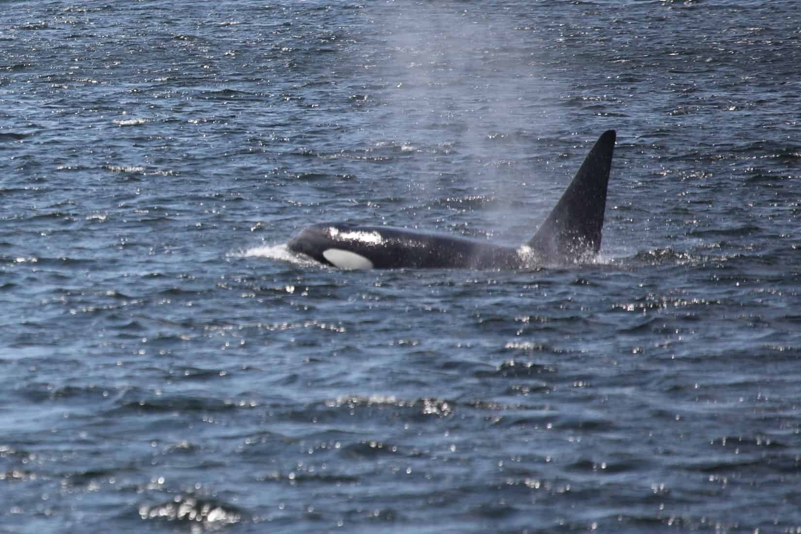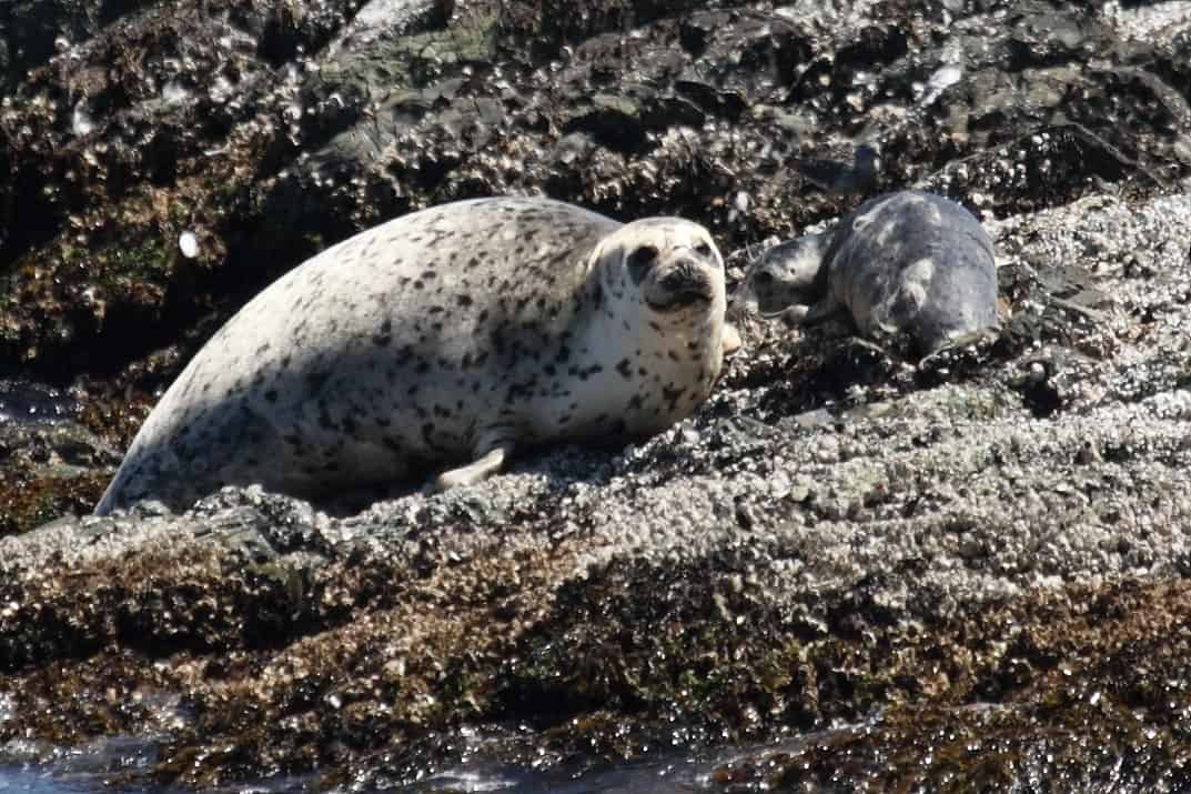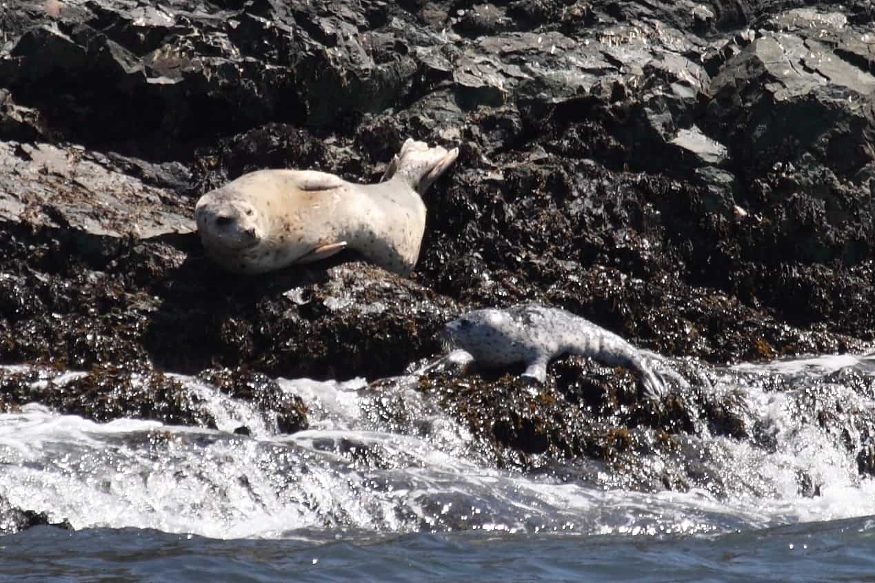 Instead we were treated to over an hour of spending time with Bigg’s (formerly known as transient) killer whales. We were able to see a Bigg’s killer whale family known as the T49’s. These killer whales eat marine mammals, and they were actively hunting through the passes between the islands. There were numerous harbor seals on the rocky haul outs with newborn pups, and pregnant females. Harbor porpoise were also observed feeding in the tidal rips.