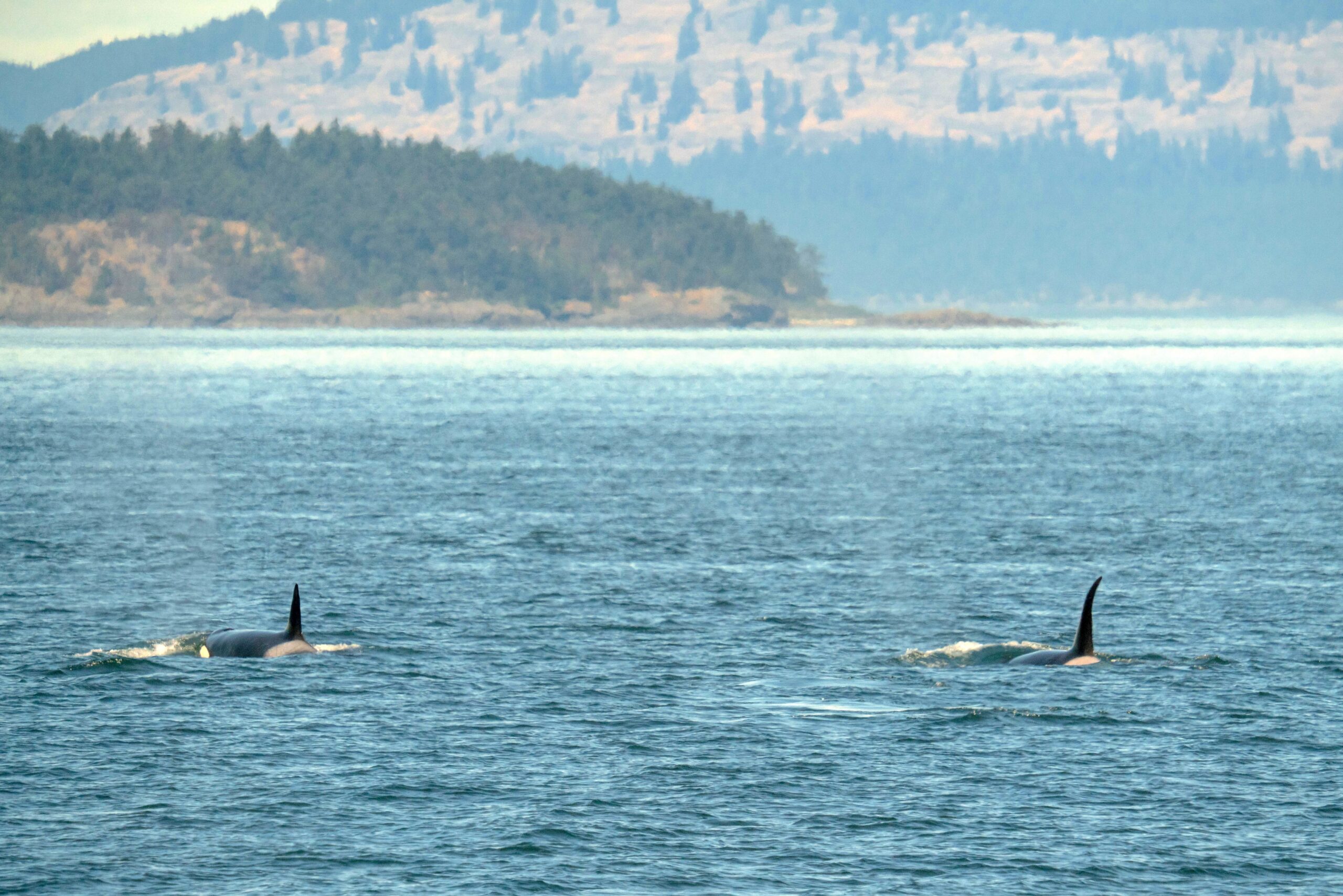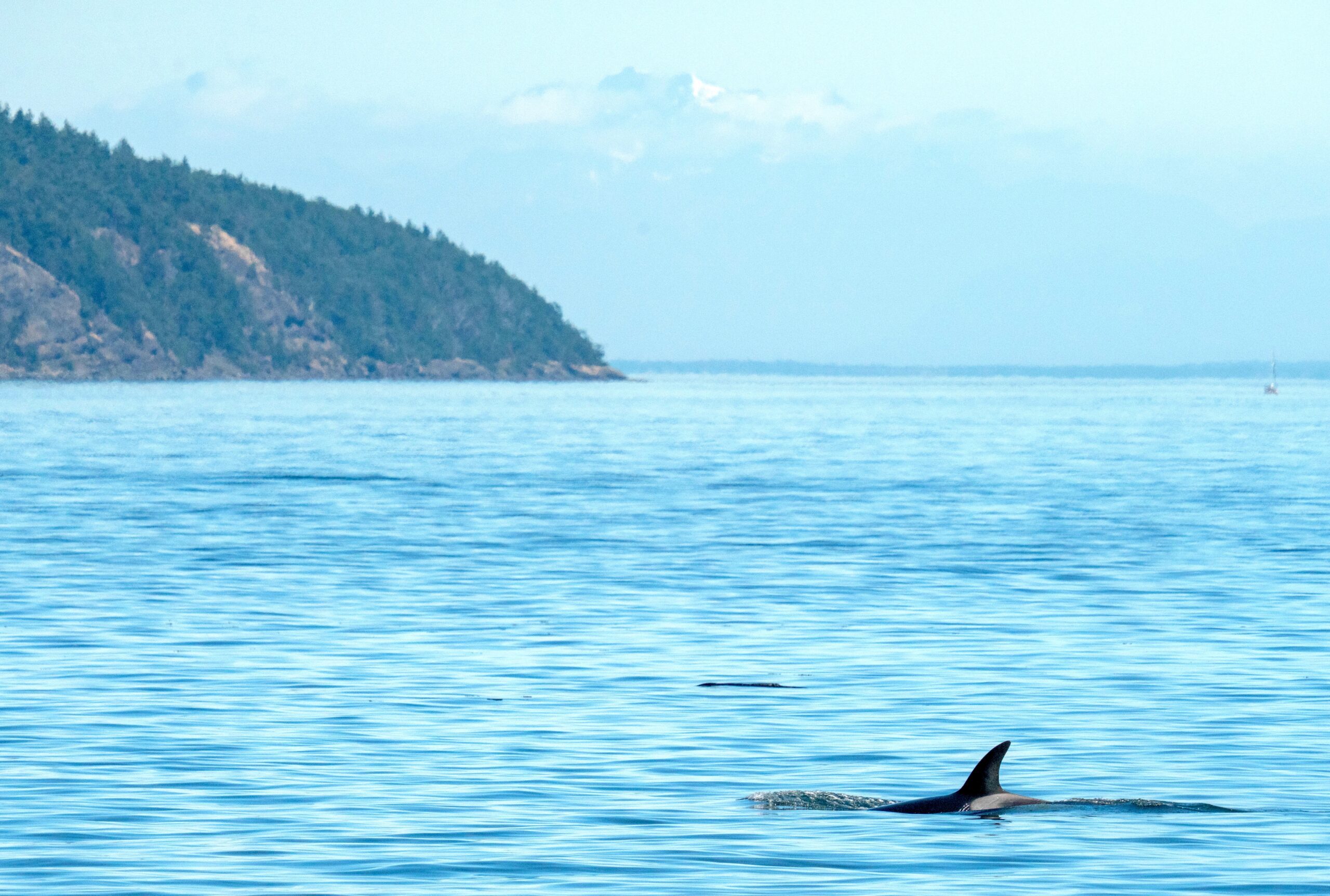 Heading into Peavine Pass we got a great look at another eagle perched in a tree, the perfect grounds to spot fish down below. It’s always fun going through the heart of the San Juan Islands as you get to see so many smaller islands usually not visible by the ferry. We headed into Harney Channel and then north through San Juan Channel. We headed west to give Spiden Island a good look. There were some larger birds of prey circling high above the trees, most likely turkey vultures. We scanned south into Harro Strait for any critters but continued north hearing some reports of humpbacks whales in Swanson Channel.