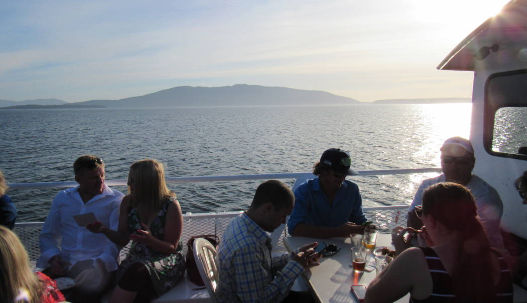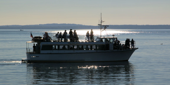 Departing at 4 pm from the Bellingham Cruise Terminal, we’ll cruise into the San Juan Islands, using information from our whale spotting network to find the best locations for viewing whales that evening. You’ll enjoy great views from the outdoor upper deck and along the bow of the boat, enjoying informative and entertaining narration from our captain.