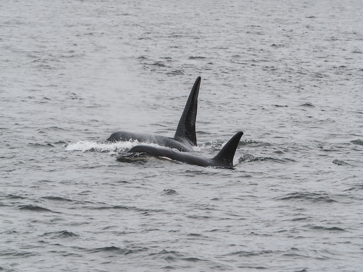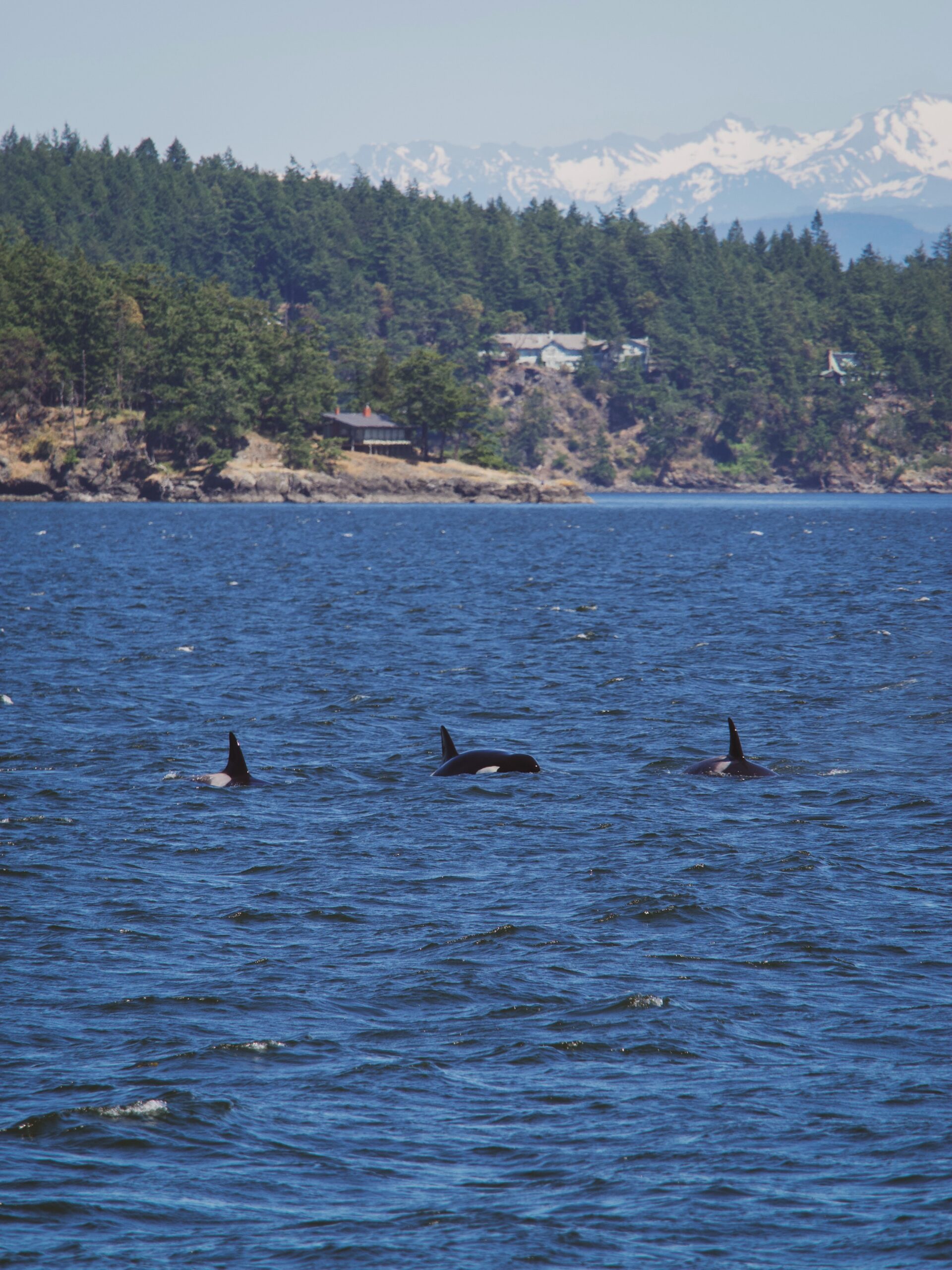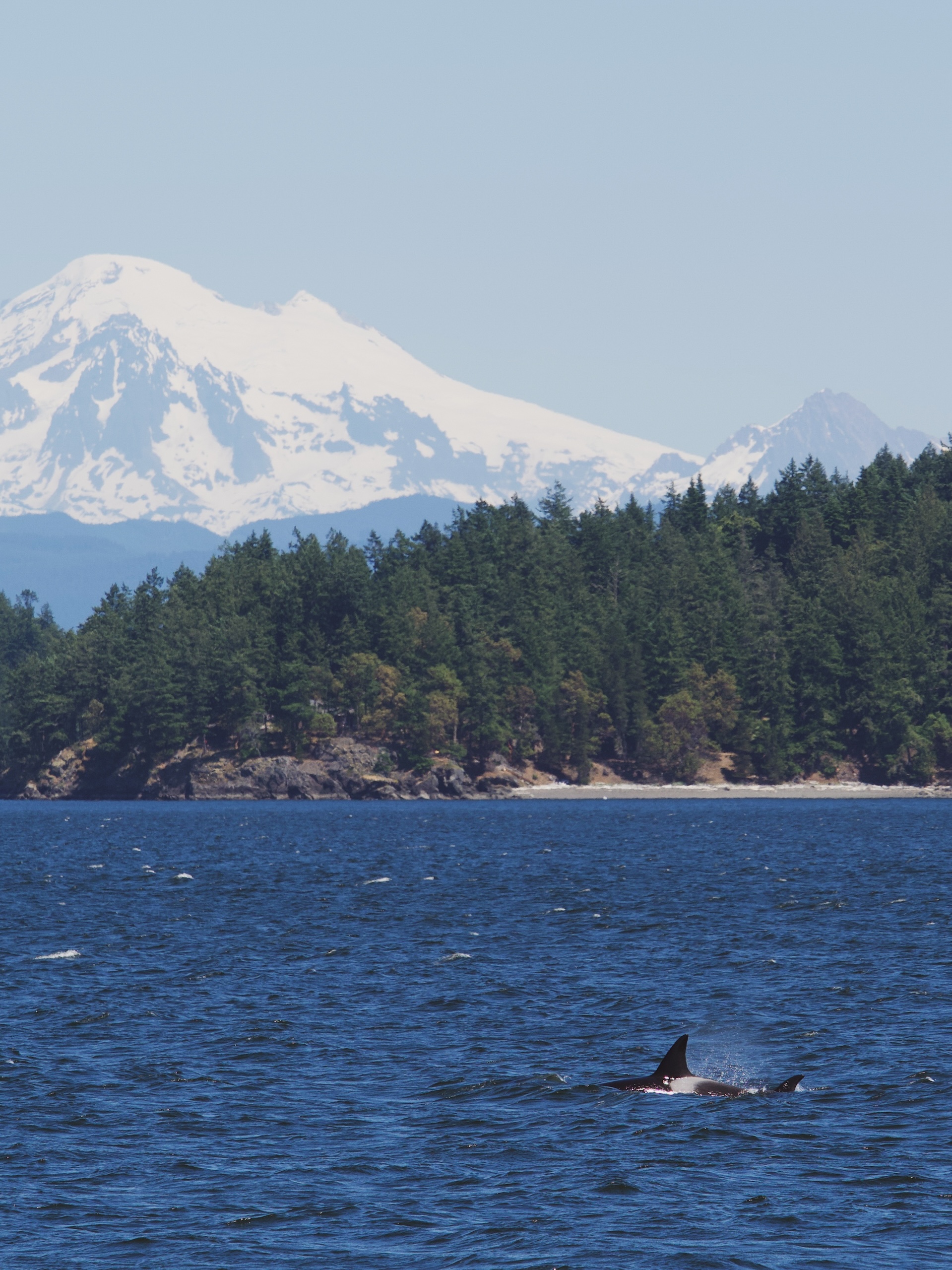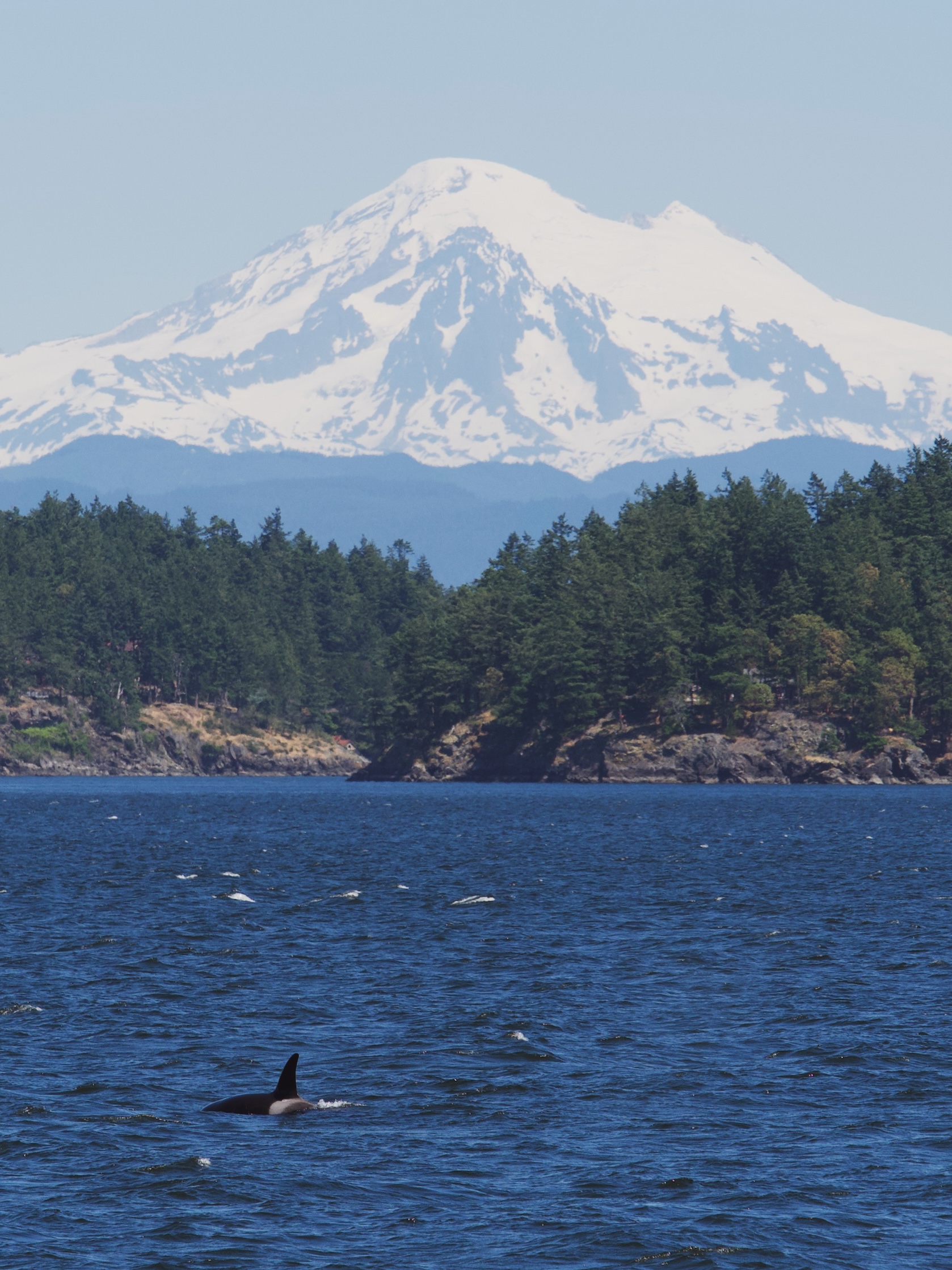 But oh man, the looks we got were incredible, with Mt. Baker looming above the islands and whales taking down some prey below the waterline. Lots of direction changes and some tail action indicated they definitely had some lunch. The stoke was high getting to see this special pod.