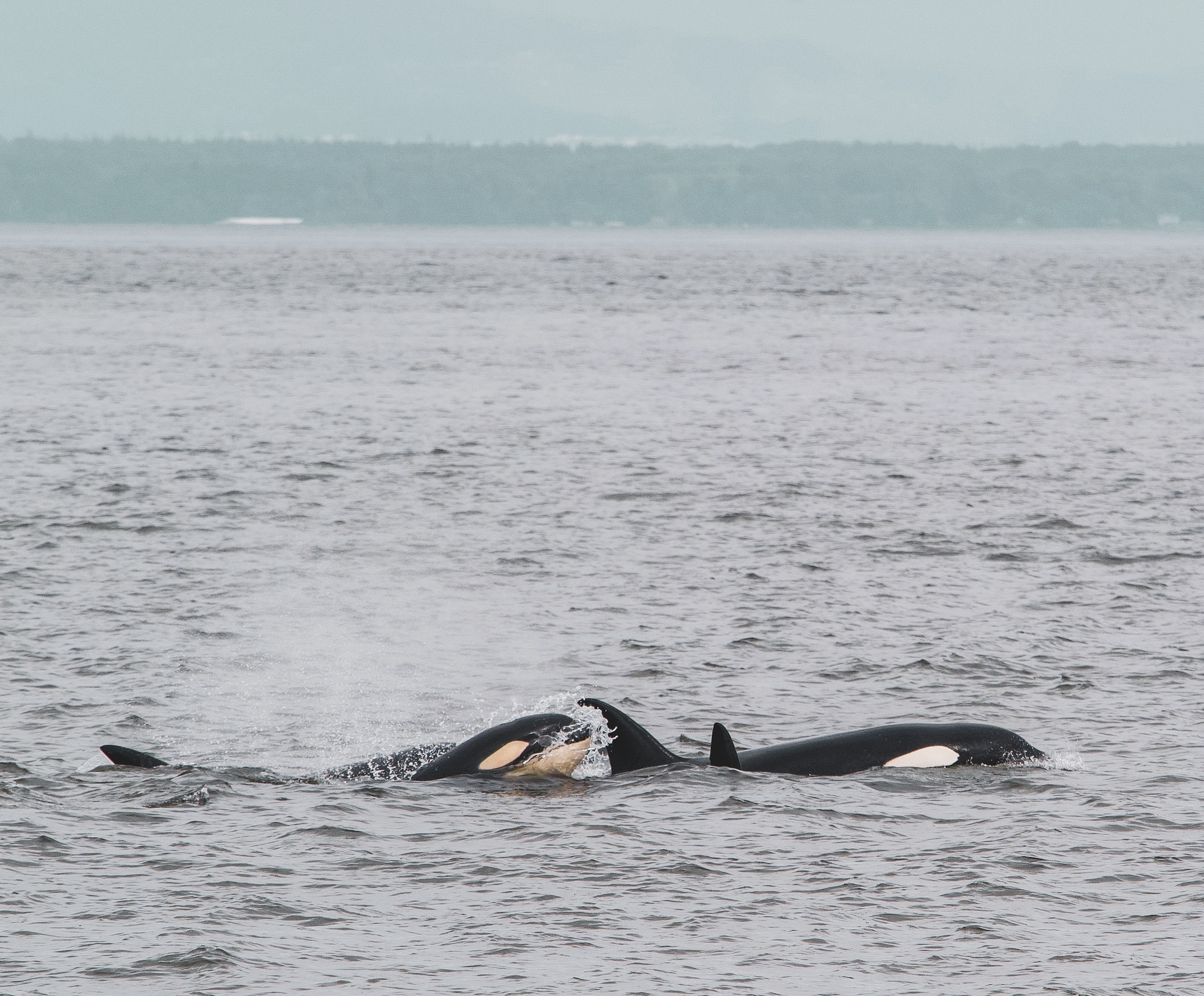 Later in the day reports came that there were whales in Canada near Active pass, which is right at our further range limit. We were worried that they would continue north, but we decided to go for it. We are so glad we did! We caught up with the whales in the Pass, and they decided to swim right to the shoreline. There was one whale that was doing some maneuvering on the shoreline that resembled hunting.