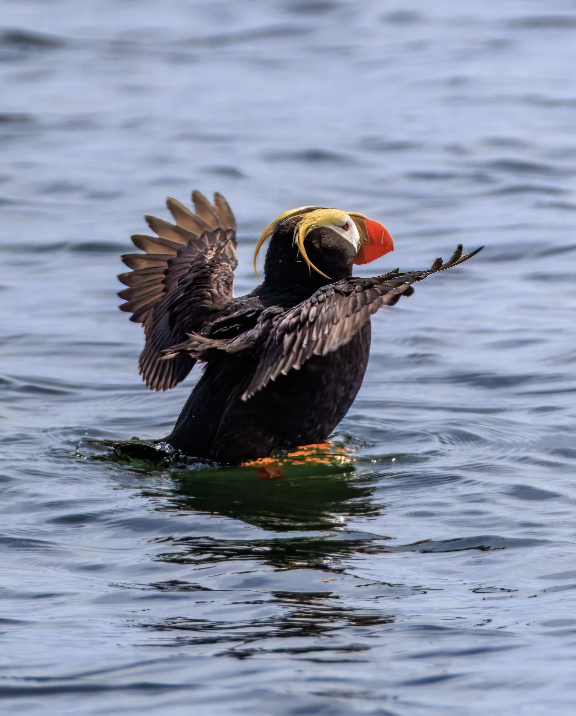 On the bird cruise we saw eight tufted puffins! Almost all solo, until the very tail end of the cruise, we got glimpses of a pair. Found a humpback that fluked for us, for just one set of surfaces before we had to get home. Check out Jamie Kinney’s excellent photo set from the bird watch: