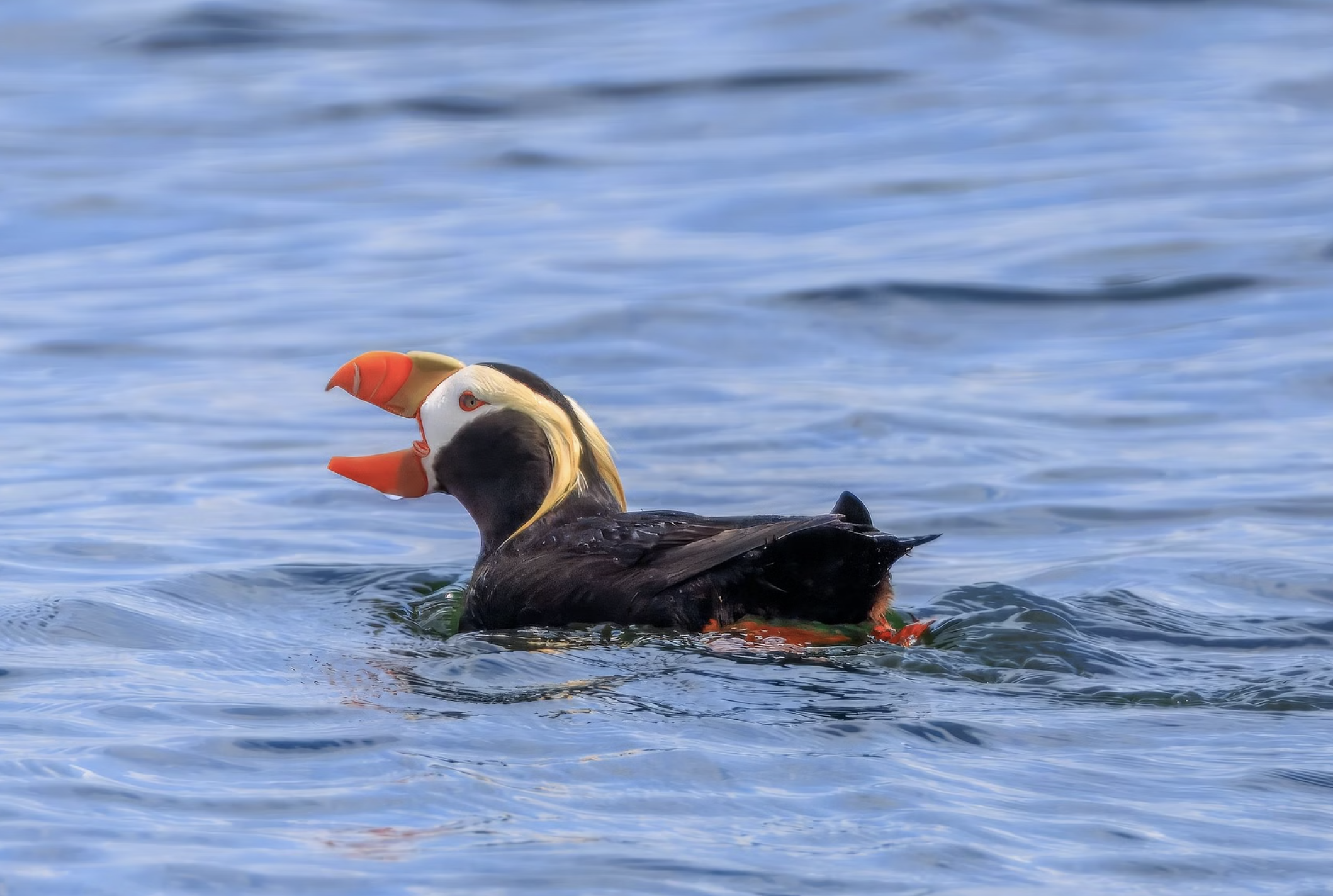 On our journey, we also saw Elsie May, the elephant seal lounging on the beach at Skyline. The sea otter, Otis was resting in the kelp at Bird Rocks. We stopped at Smith Island on our way home to see a singular tufted puffin that was preening itself. Finally, we watched 5 stellers on the Sinclair buoy.