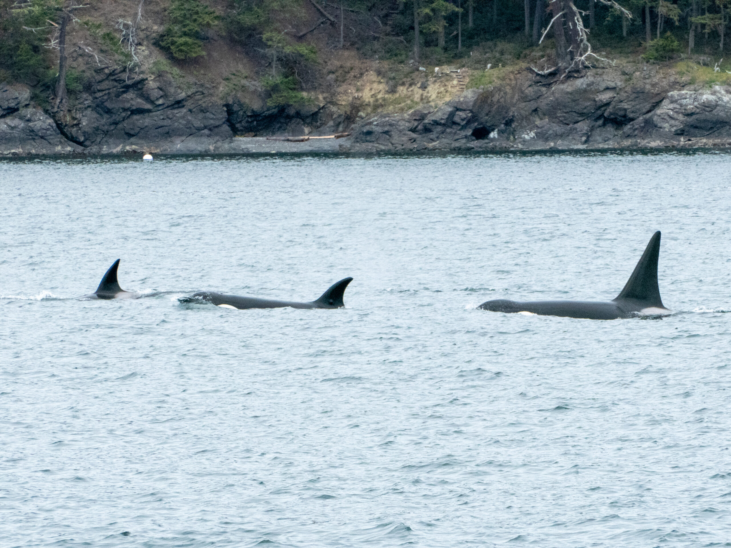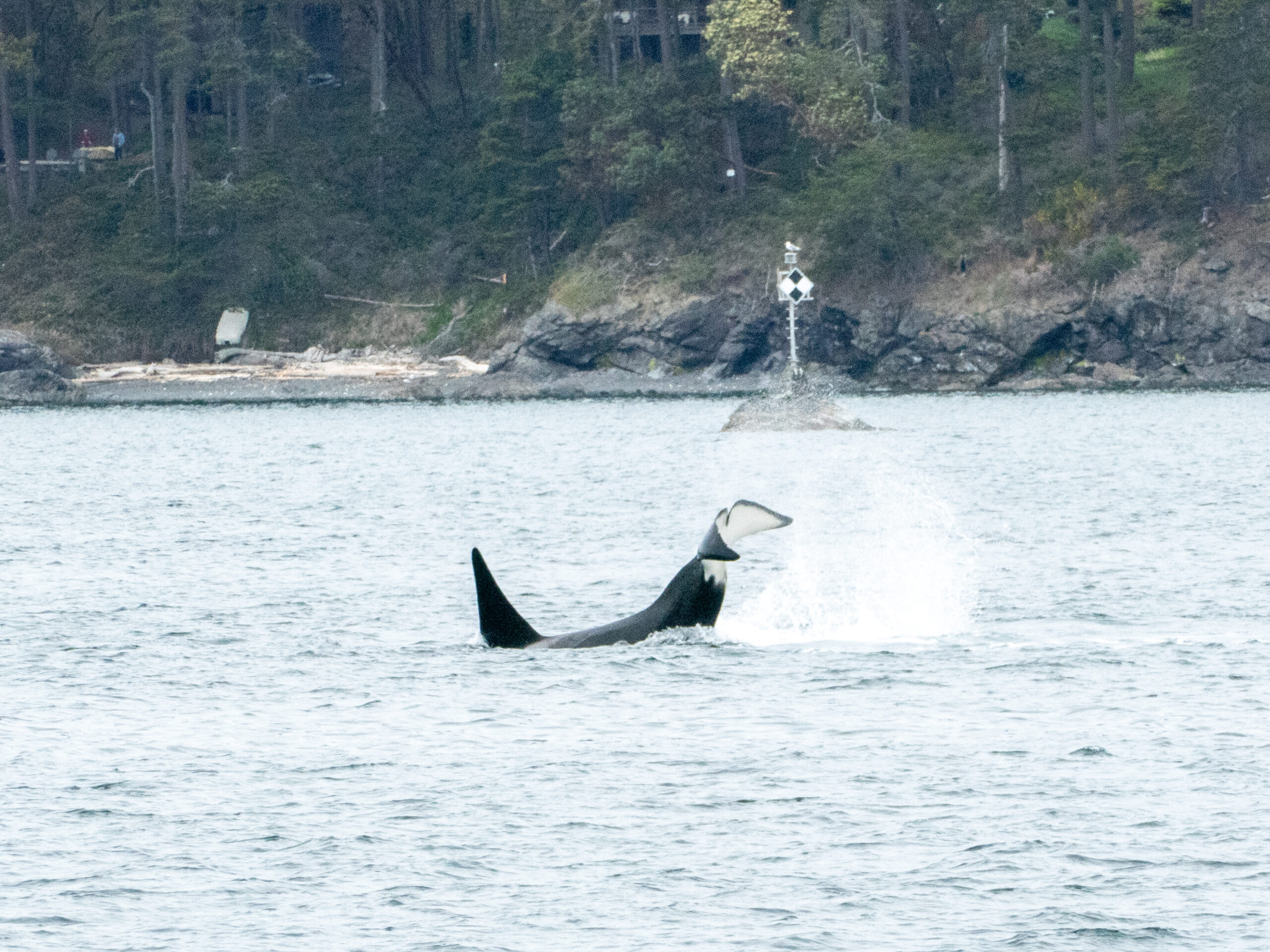 Soon after our departure from Bellingham , we got a view of some cormorants and gulls at Viti Rocks our go-to first spot on a tour for wildlife. Then we spotted a Steller Sea lion eating a fish out in the water in front of Toe Head Island. It was likely a large male, as his head was massive coming out of the water. We briefly saw him fling his snack around, before diving back down out of sight. We also saw 3 other juvenile Stellers on Lydia Shoal marker in Rosario Strait, that were laying their heads on each other.