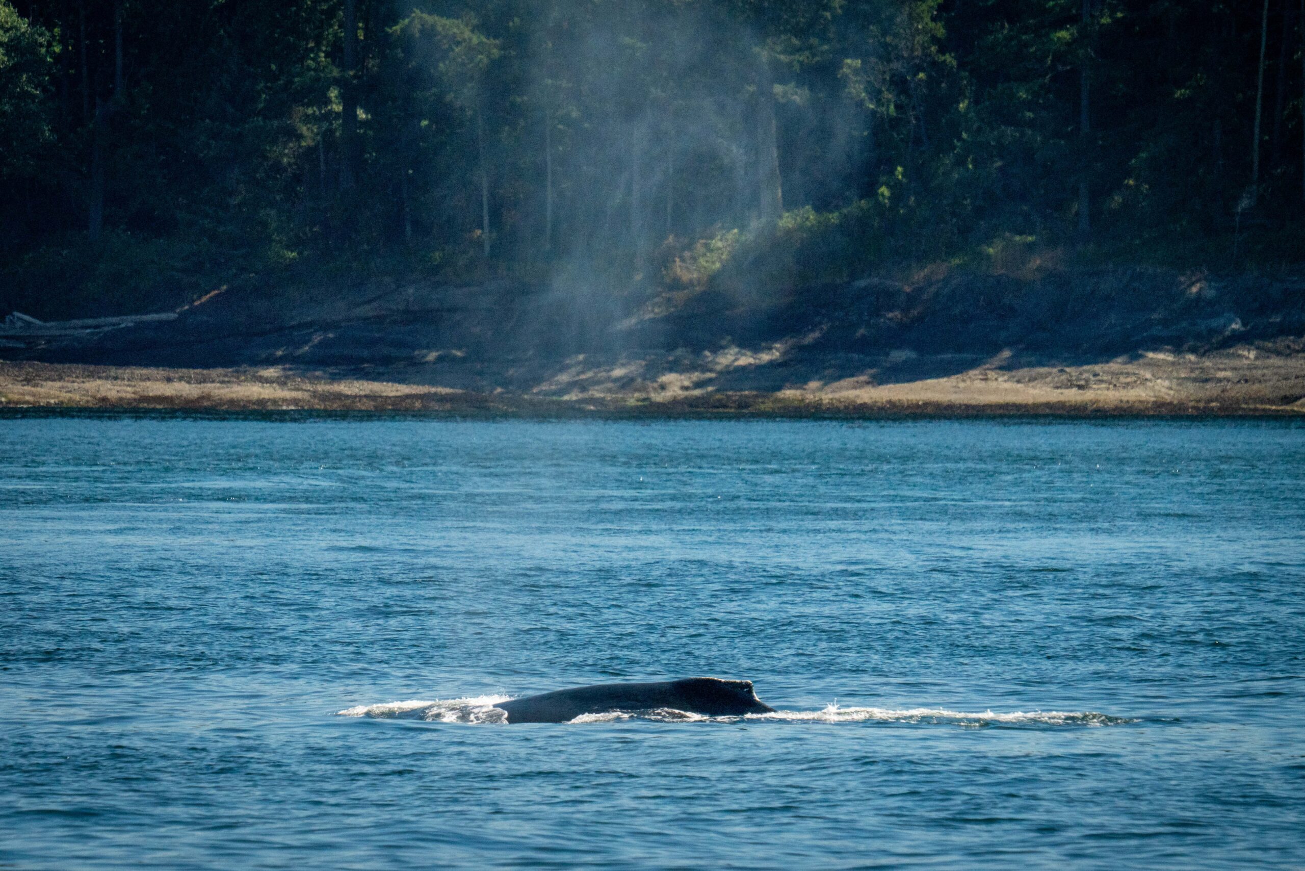 They were much more consistent with their direction, but this whale, BCX0519, Stitch, had some long downtimes. We had beautiful looks at their spout, great vocalization of their spout as well. Stitch gave us a few flukes but they were diving deep in pretty shallow water off of Patos Island. Super excited to find this whale again after searching hard. The beauty of the backdrop of Patos was a treat too. Cruising home we stopped at the north side of Lummi to check out 4 steller sea lions taking a nap before cruising home.