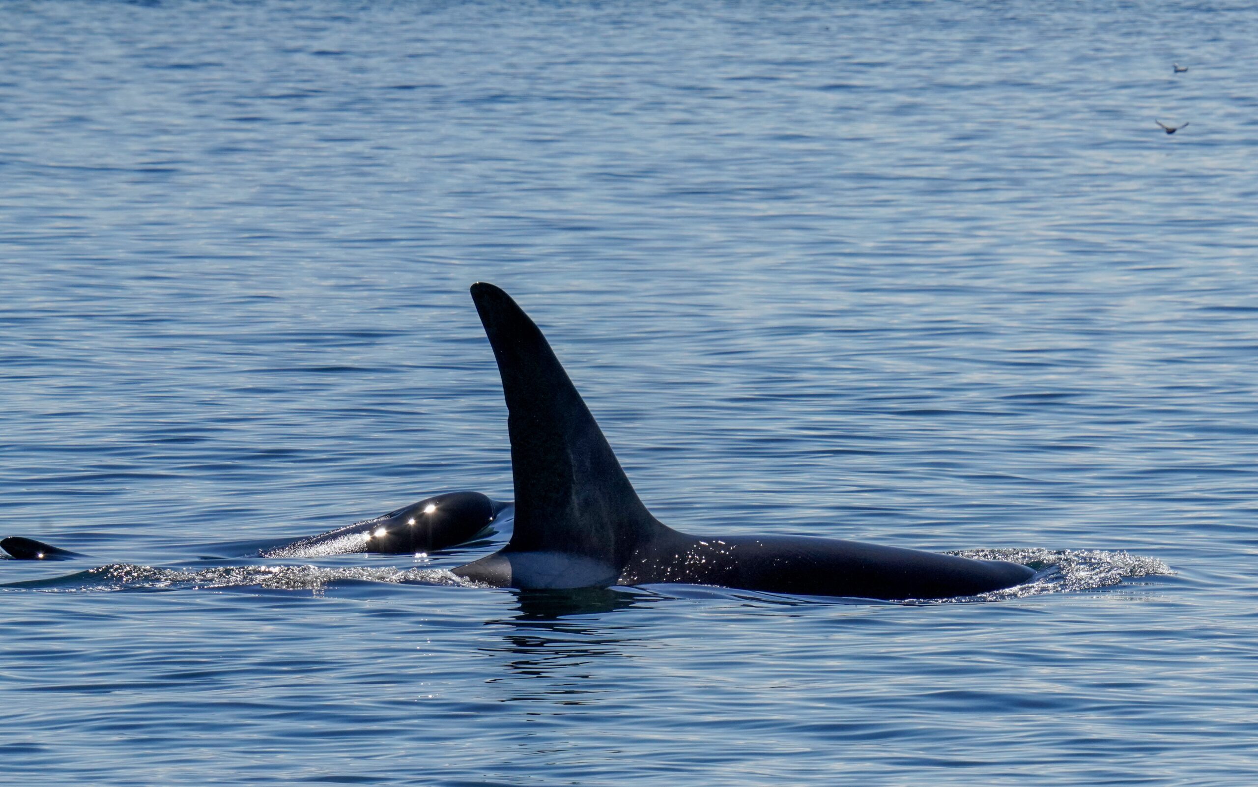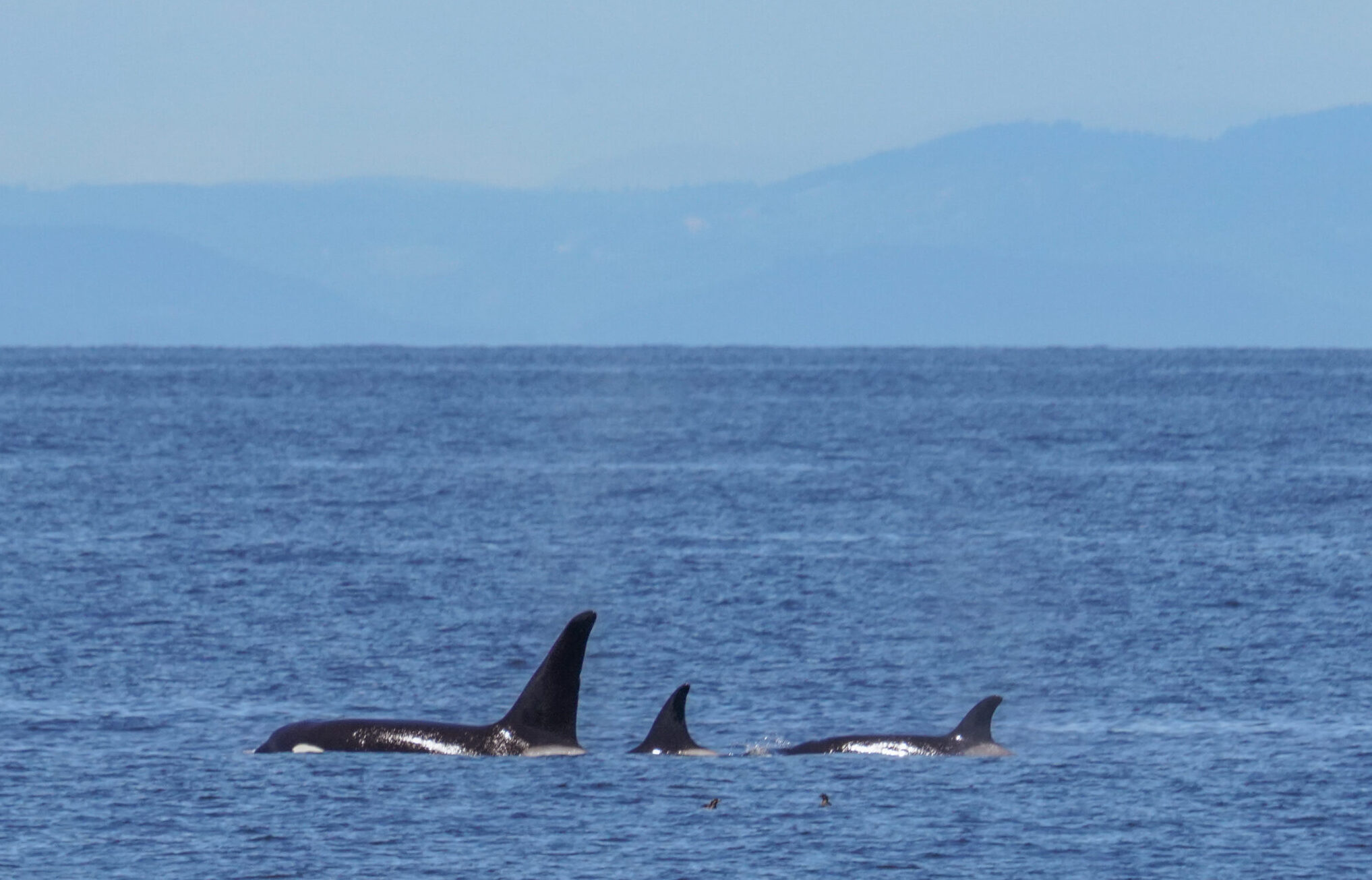 The weather made for clear views of the T100 orca pod. One male named Laurel born in 2002, and two female orcas: Hutchins the matriarch born in 1979, and Tharaya born in 2009.